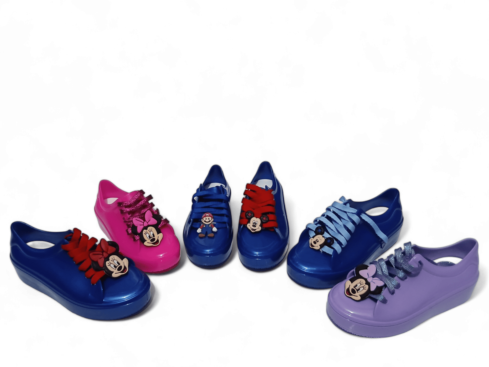 Incluye LACE CHARMS (apliques para cordones) Minnie o Mickey en PVC. Doble cordón para personalizar tus pasos ( 1 cordón fashion / 1 cordón clásico).