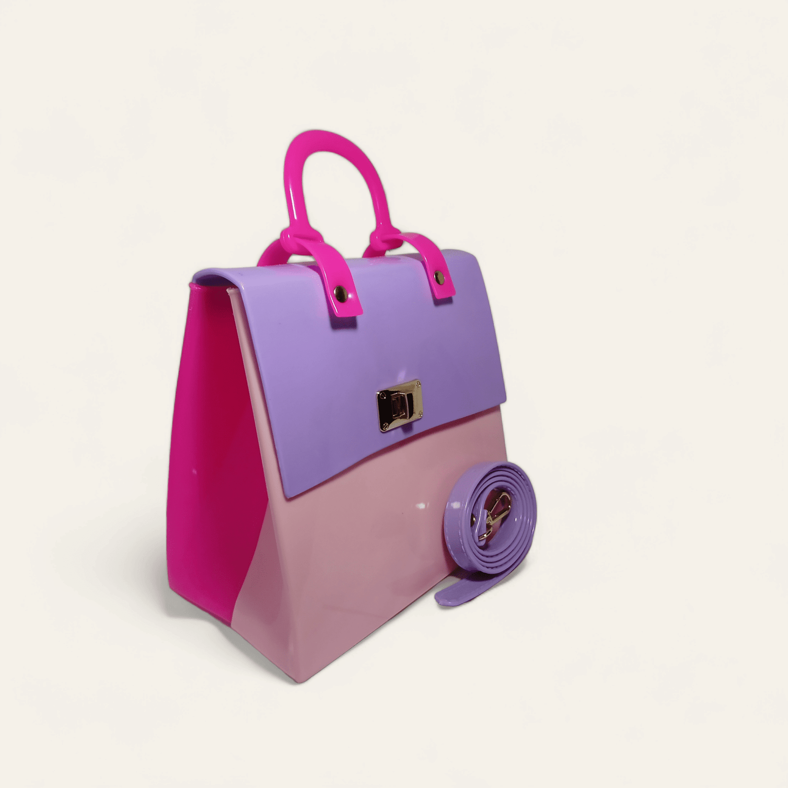 CARTERA CIELO en PVC tipo cofre. Incluye correa de hombro removible.