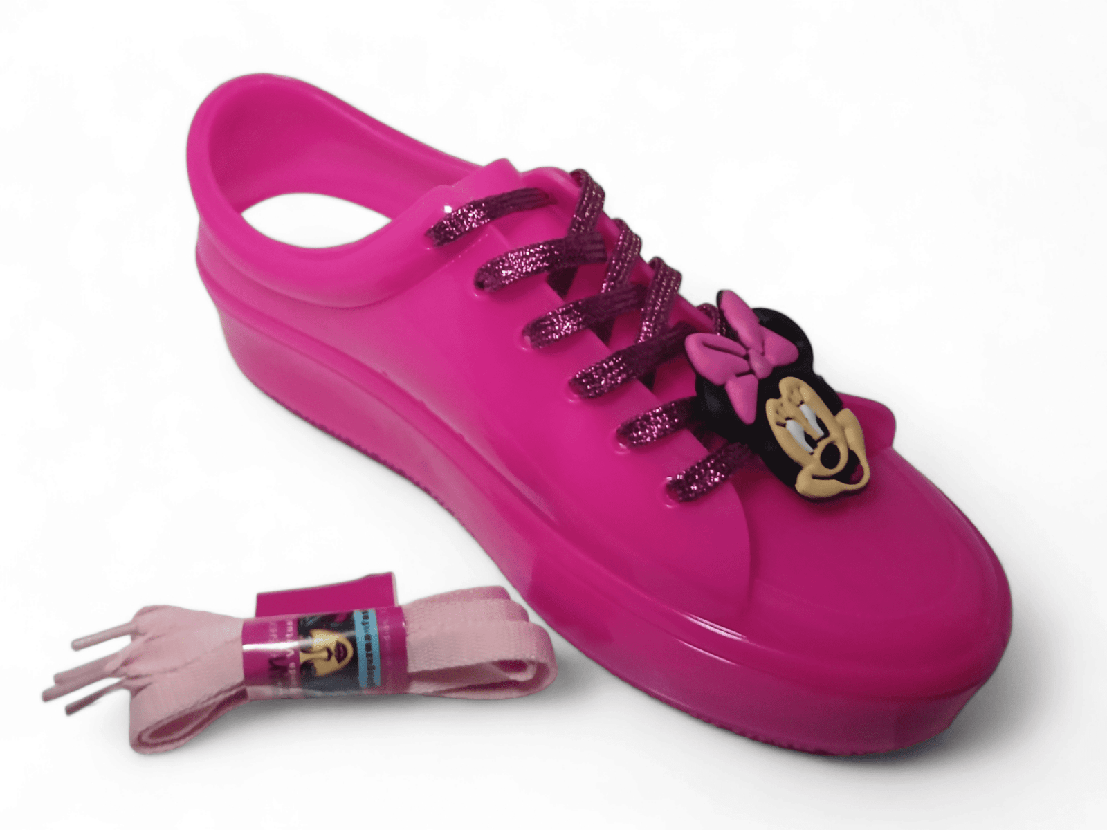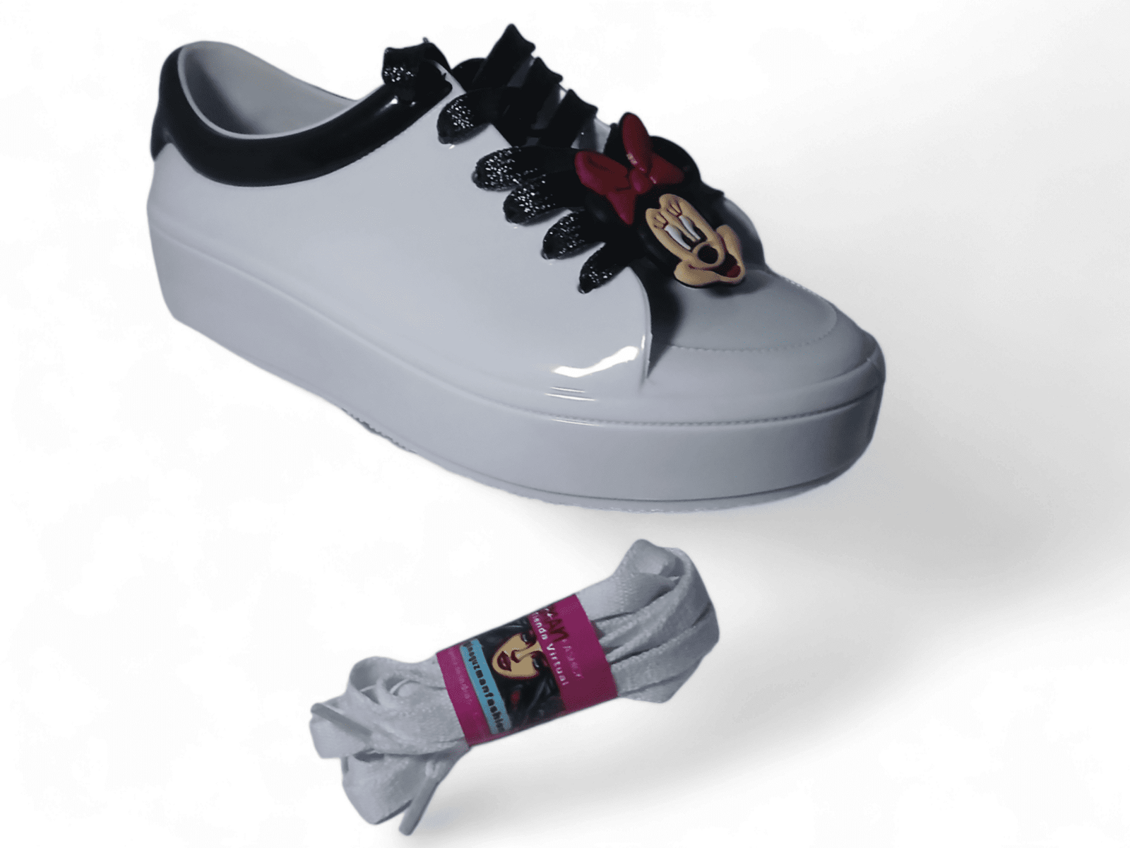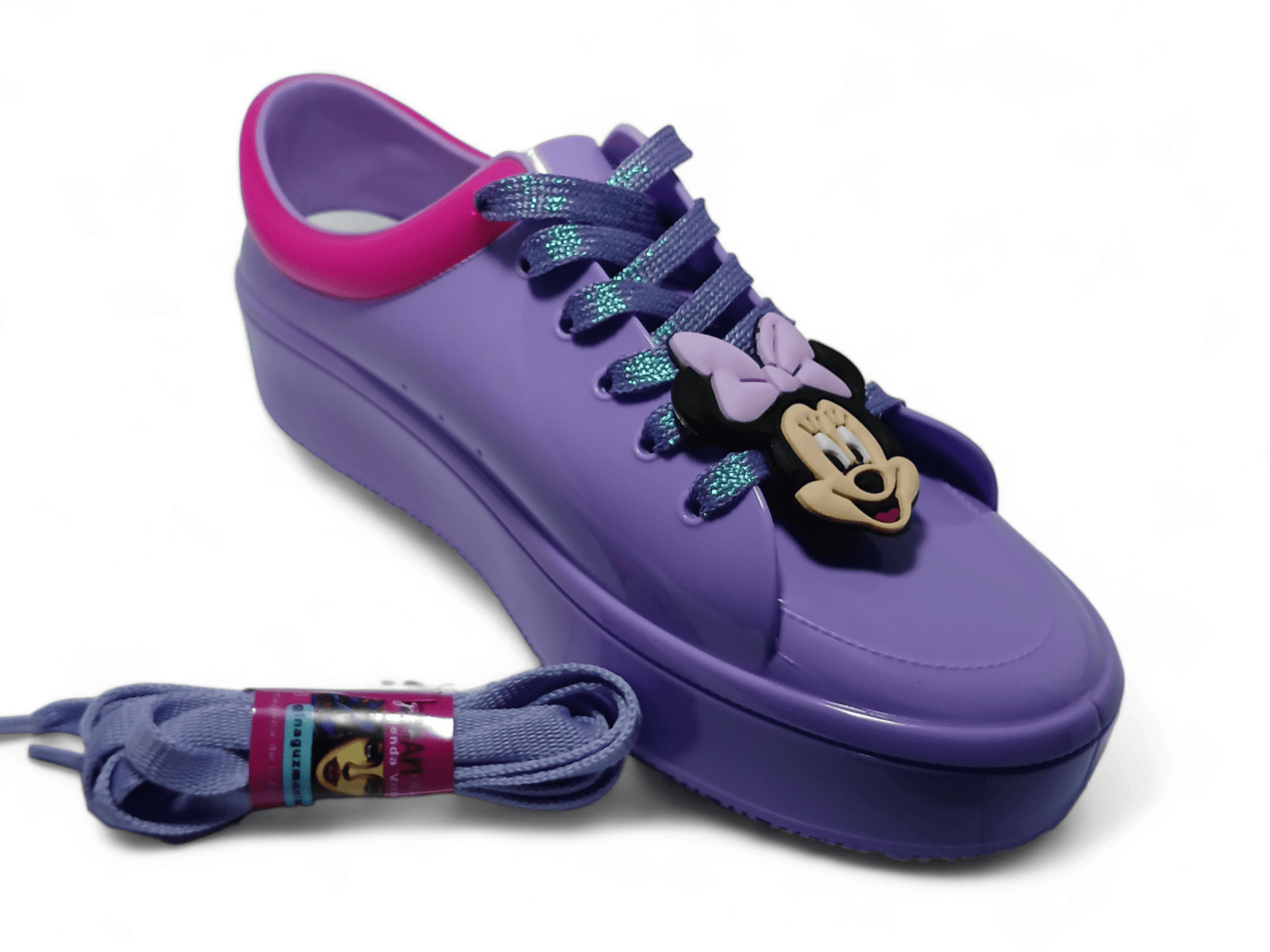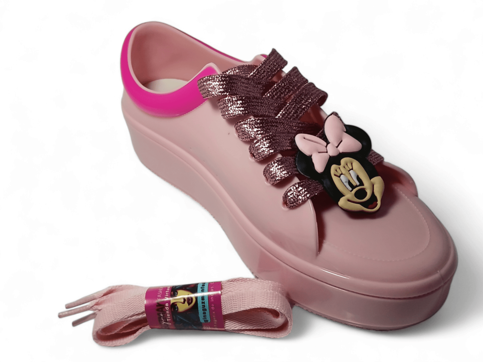 Incluye LACE CHARMS (apliques para cordones) Minnie o Mickey en PVC. Doble cordón para que personalices tus pasos.