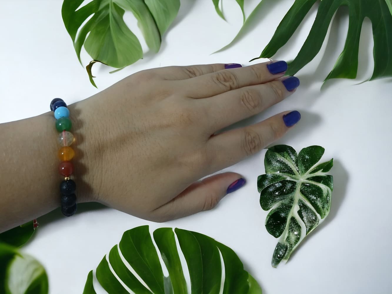 Piedra natural que aporta armonía. Simboliza los 7 puntos energeticos de nuestro cuerpo, cada color equilibra nuestra energía, incluyendo lo material, espiritual, fisico y mental. Cuando se esta armonizado fluye la energía con mayor facilidad.